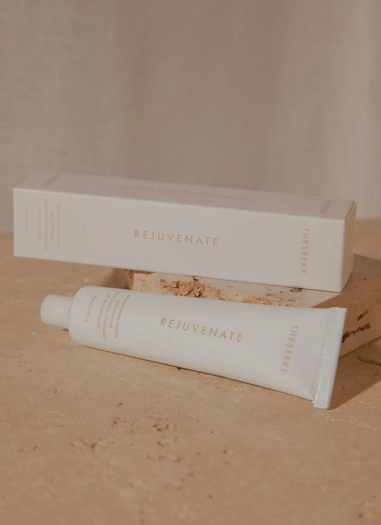 Rejuvenate helps to nourish & regenerate skin cells. It contains Kakadu plum, seabuckthorn, Co-Q10 & green tea which deliver a rich combination of antioxidants that defend skin cells against free radical damage & increase blood flow for healing the skin. A rich combination of aloe vera juice & organic plant oils of almond, avocado, rosehip, cacao butter & shea replenish natural moisture & hydration levels to maintain healthy skin function. A blend of essential oils, lavender, rose, frankincense help to heal & soothe the skin.
